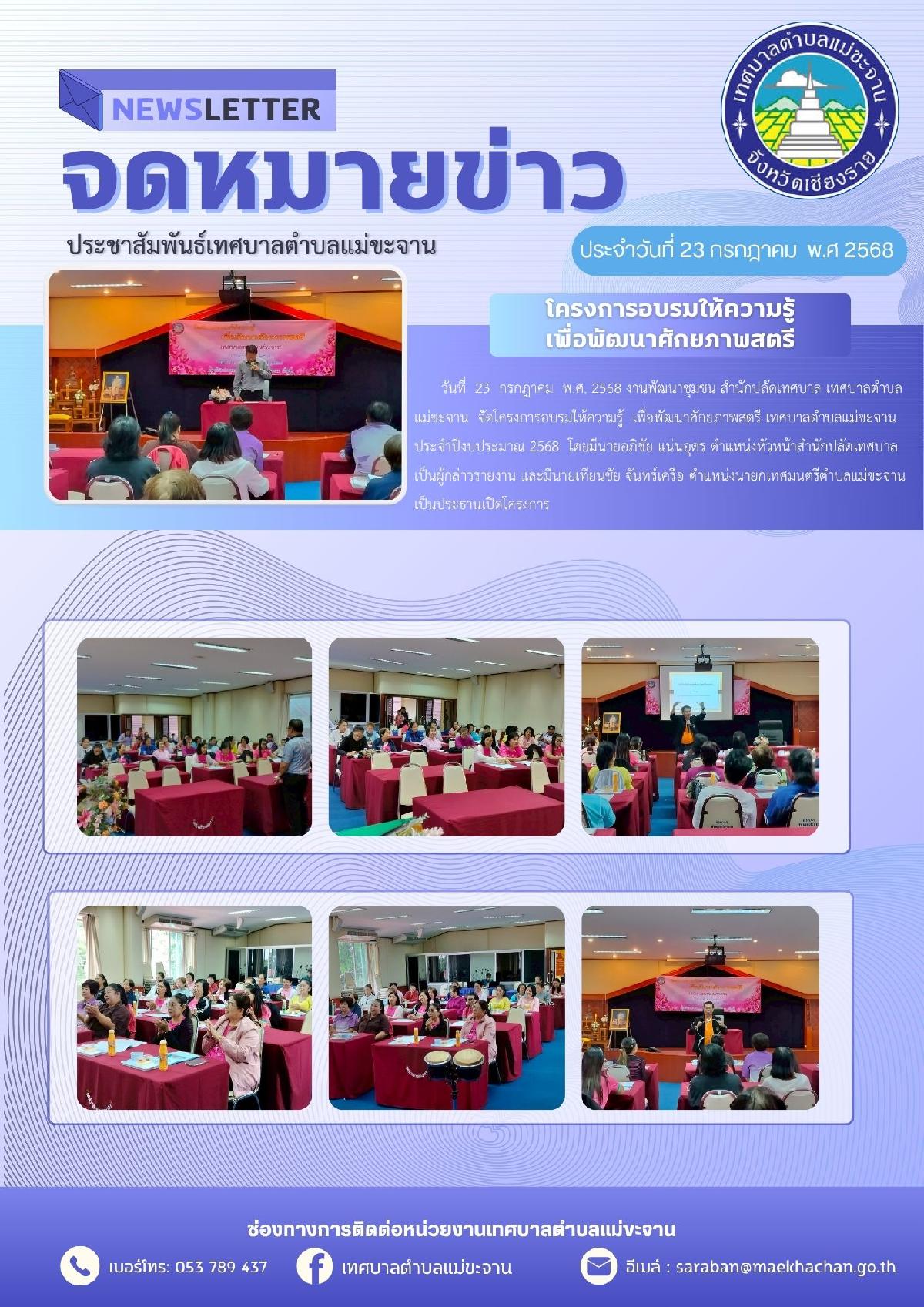 โครงการอบรมให้ความรู้พัฒนาศักยภาพสตรี ประจำปีงบประมาณ พ.ศ. 2568 เทศบาลตำบลแม่ขะจาน