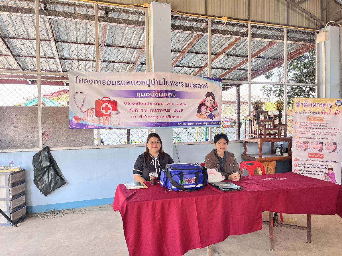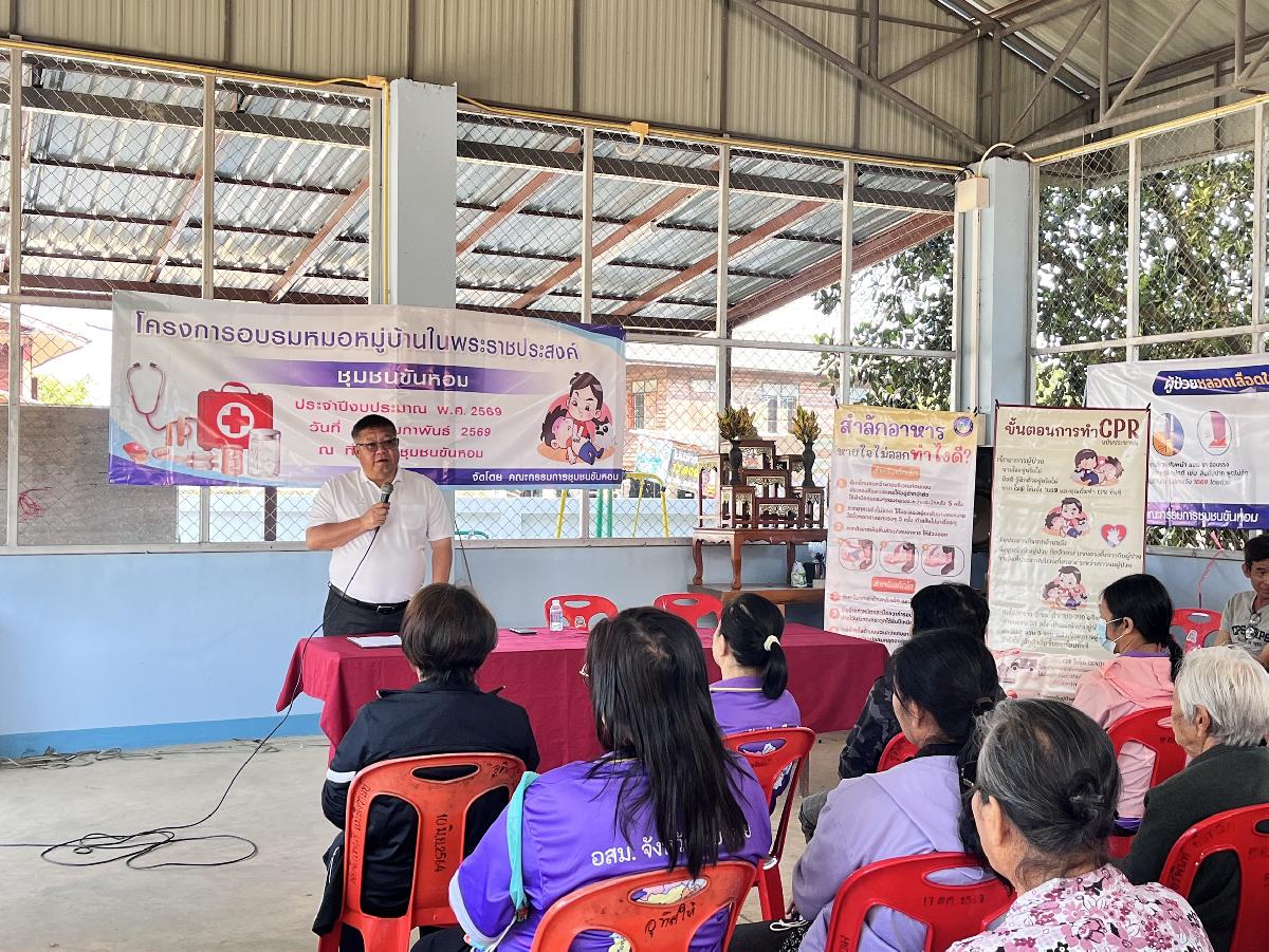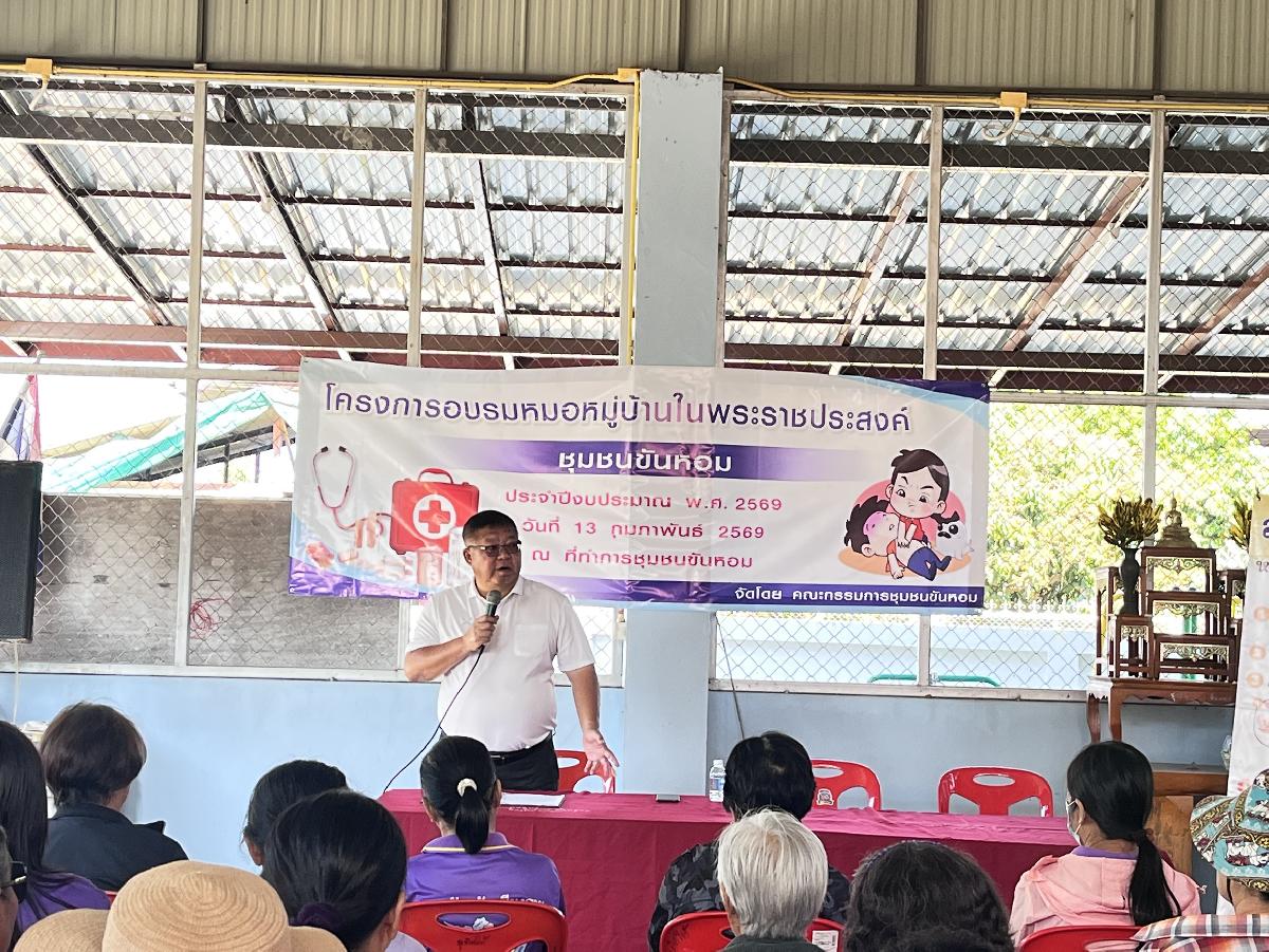 วันที่ 13 กุมภาพันธ์ 2569 ท่านนายกเทียนชัย จันทร์เครือ นายกเทศมนตรีตำบลแม่ขะจาน ได้มอบหมายให้ท่านรองวินัย ทานศิลา รองนายกเทศมนตรีตำบลแม่ขะจาน เป็นประธานในพิธีเปิดโครงการอบรมหมอหมู่บ้านในพระราชประสงค์ชุมชนขันหอม ณ ที่ทำการชุมชนขันหอม