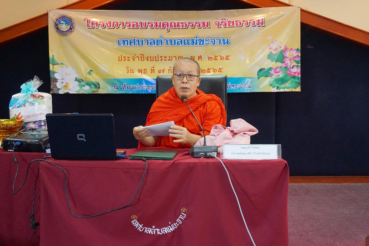 วันที่ 7 กันยายน 2565 เทศบาลตำบลแม่ขะจาน ได้จัด “ โครงการอบรมคุณธรรมจริยธรรม เทศบาลตำบลแม่ขะจาน ประจำปี 2565 ” โดยมีนายเทียนชัย จันทร์เครือ นายกเทศมนตรีตำบลแม่ขะจาน เป็นประธานในพิธีเปิดโครงการ ณ ห้องประชุมเทศบาลตำบลแม่ขะจาน ซึ่งการดำเนินการตามโครงการฯ ดังกล่าวมีวัตถุประสงค์ เพื่อให้คณะผู้บริหาร สมาชิกสภาเทศบาล พนักงานเทศบาล พนักงานจ้างและลูกจ้างประจำของเทศบาลตำบลแม่ขะจาน ได้มีจิตสำนึกที่ดี มีคุณธรรมจริยธรรมและมีความเข้าใจในหลักศีลธรรม ในการปฏิบัติงานและสามารถนำไปปรับใช้ในชีวิตประจำวันได้ โดยได้รับความอนุเคราะห์จากท่านพระครูปริยัติชัยวัฒน์ รองเจ้าคณะตำบลแม่เจดีย์ เจ้าอาวาสวัดสันมะนะ มาบรรยายให้ความรู้ในครั้งนี้