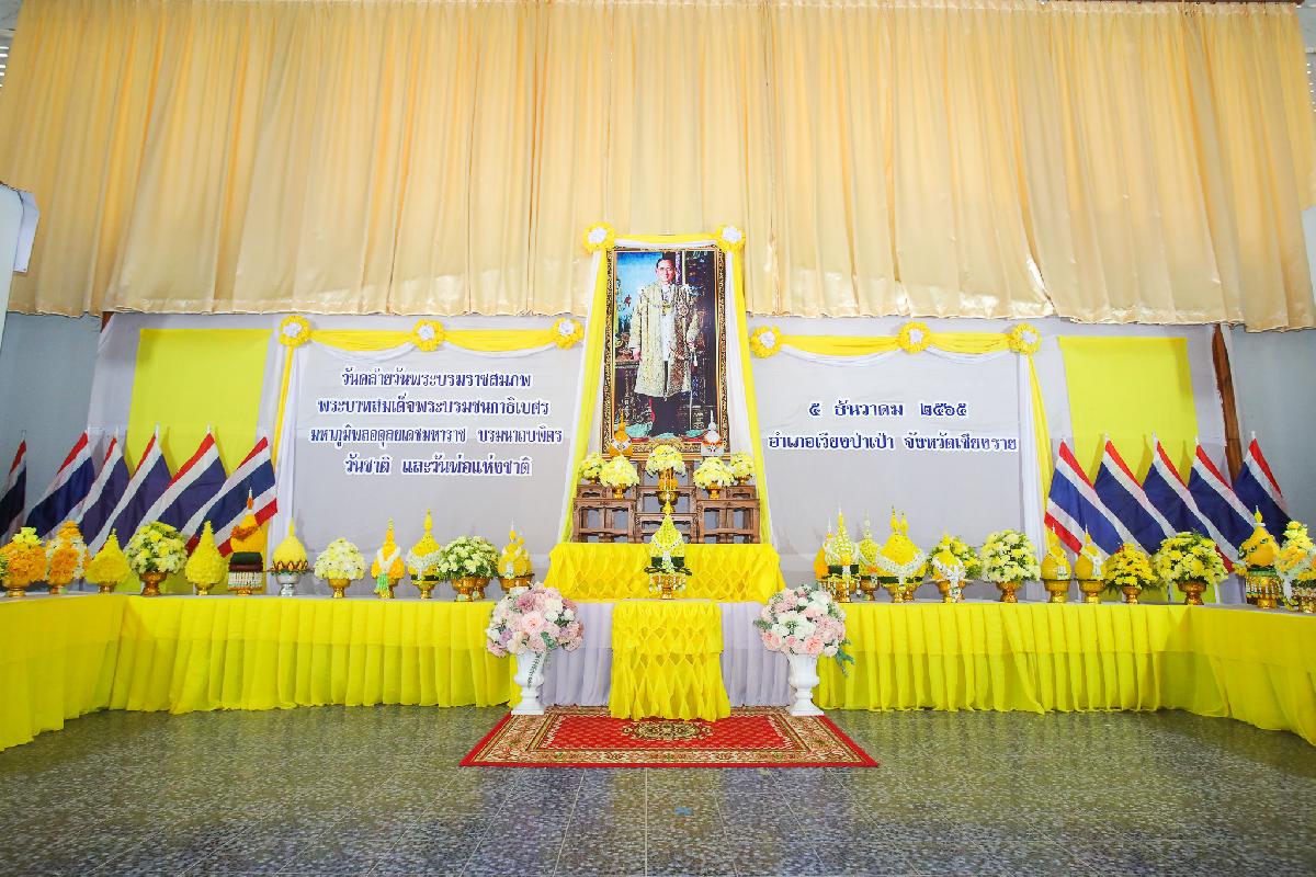 วันที่ 5 ธันวาคม 2565 เทศบาลตำบลแม่ขะจาน ได้เข้าร่วมกิจกรรม “ เนื่องในวันคล้ายวันพระบรมราชสมภพ พระบาทสมเด็จพระบรมชนกาธิเบศร มหาภูมิพลอดุลยเดชมหาราช บรมนาถบพิตร วันชาติ และวันพ่อแห่งชาติ ” 5 ธันวาคม 2565 ณ หอประชุมอำเภอเวียงป่าเป้า อำเภอเวียงป่าเป้า จังหวัดเชียงราย รวมถึงได้มีการจัดตั้งโต๊ะหมู่ประดิษฐานพระบรมฉายาลักษณ์ พร้อมเครื่องราชสักการะและประดับพระบรมฉายาลักษณ์ บริเวณด้านหน้าสำนักงานเทศบาล