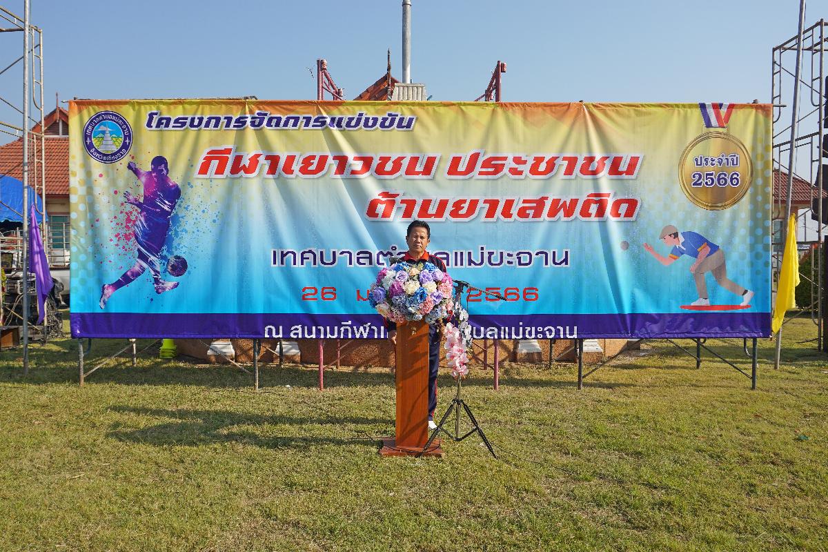 วันที่ 26 มกราคม 2566 เทศบาลตำบลแม่ขะจาน ได้จัด " โครงการจัดการแข่งขันกีฬาเยาวชน ประชาชนต้านยาเสพติด เทศบาลตำบลแม่ขะจาน ประจำปี 2566 " โดยมีนายเทียนชัย จันทร์เครือ นายกเทศมนตรีตำบลแม่ขะจาน เป็นประธานในพิธีเปิดโครงการฯ ณ สนามกีฬาเทศบาลตำบลแม่ขะจาน ซึ่งภายในกิจกรรมประกอบด้วย การแข่งขันฟุตบอล เปตอง และการแข่งขันกีฬาพื้นบ้าน เช่น กระโดดเชือก วิ่งกระสอบ ขี่ม้าส่งเมือง แข่งรถแรลลี่ เป็นต้น โดยการดำเนินการตามโครงการฯ ดังกล่าว มีวัตถุประสงค์ เพื่อส่งเสริมให้เยาวชนและประชาชนรู้จักใช้เวลาว่างให้เกิดประโยชน์โดยการออกกำลังกายและเป็นการปลูกฝังให้เยาวชนและประชาชน มีระเบียบวินัย รู้จักเคารพ กฎ กติกา อีกทั้งยังเป็นการตระหนักถึงพิษภัยจากยาเสพติด