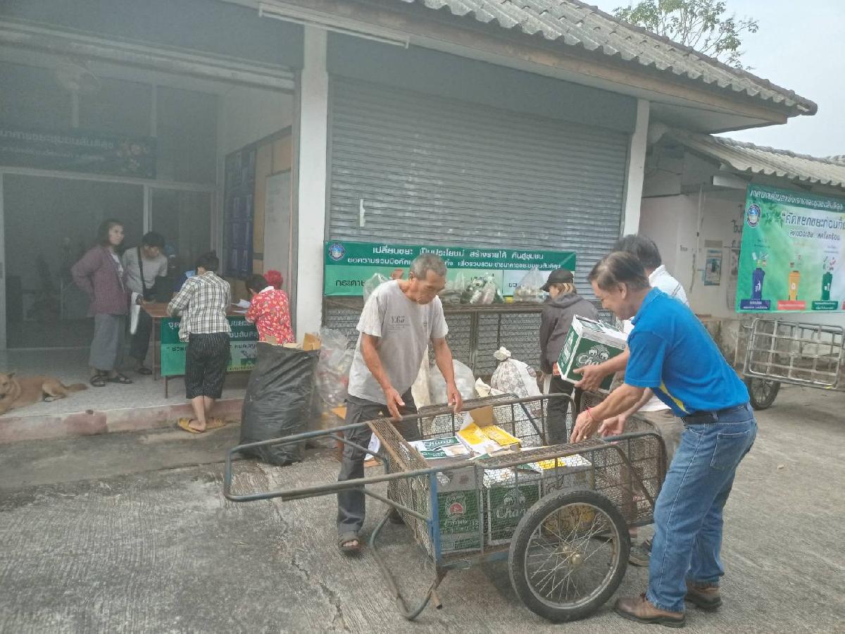 วันที่ 22 มีนาคม 2567 เวลา 09.00 น. เทศบาลตำบลแม่ขะจาน นำโดยนายสุคำ เขตขันหล้า รองนายกเทศบาลตำบลแม่ขะจาน พร้อมคณะผู้บริหาร สมาชิกสภาเทศบาลตำบลแม่ขะจาน ประธานกรรมการชุมชนคณะกรรมการชุมชนสันติสุข และประชาชนในชุมชน หมู่ 11 ตำบลแม่เจดีย์ ได้จัดกิจกรรม “ MOI Waste Bank Week – มหาดไทยปักธงประกาศความสำเร็จ 1 องค์กรปกครองส่วนท้องถิ่น 1 ธนาคารขยะ ” โดยดำเนินการจัดให้มีการซื้อขายขยะรีไซเคิลของธนาคารขยะ ณ ศาลาอเนกประสงค์ชุมชนสันติสุข