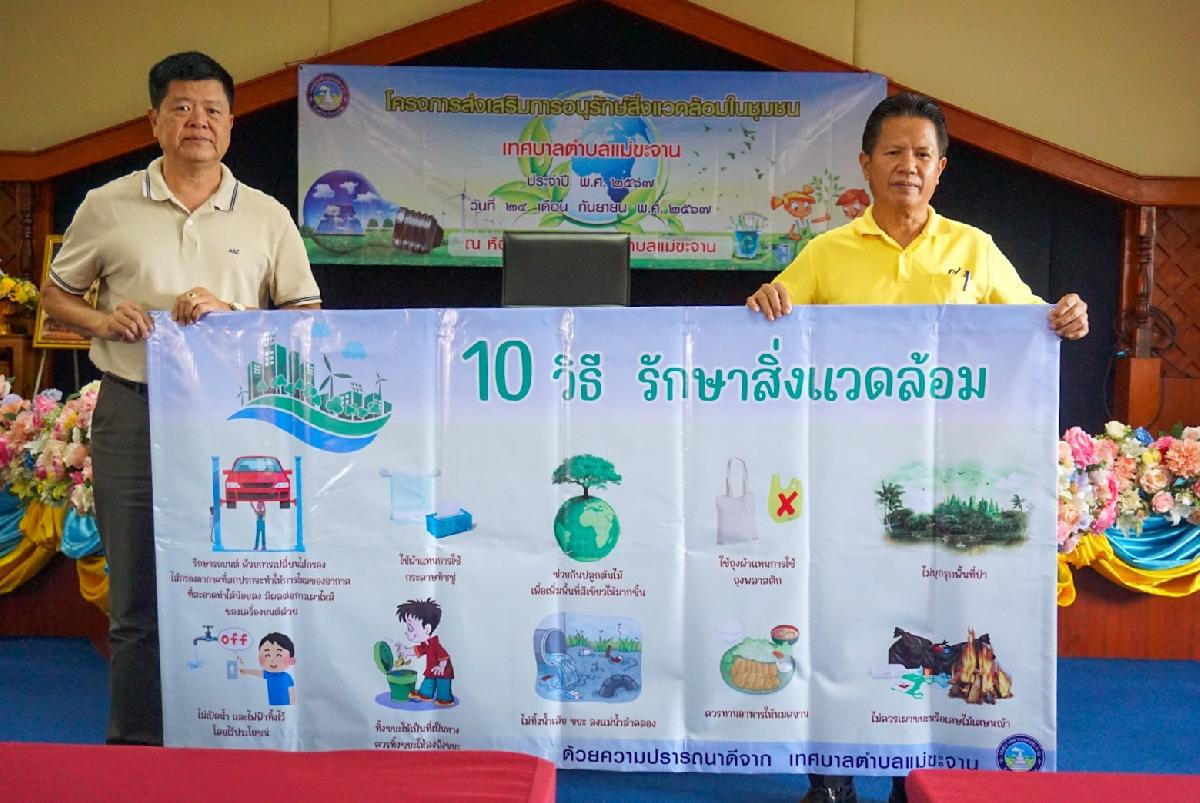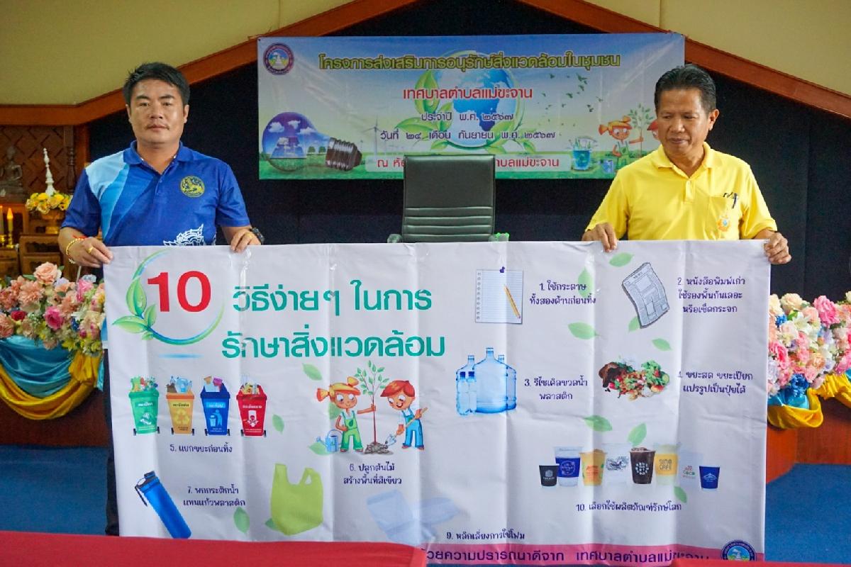 วันที่ 24 กันยายน 2567 เทศบาลตำบลแม่ขะจาน ได้ดำเนินการจัดโครงการส่งเสริมการอนุรักษ์สิ่งแวดล้อมในชุมชน เทศบาลตำบลแม่ขะจาน ประจำปี 2567 ณ ห้องประชุม สำนักงานเทศบาลตำบลแม่ขะจาน โดยมีนายเทียนชัย จันทร์เครือ นายกเทศมนตรีตำบลแม่ขะจาน เป็นประธานและกล่าวเปิดโครงการฯ