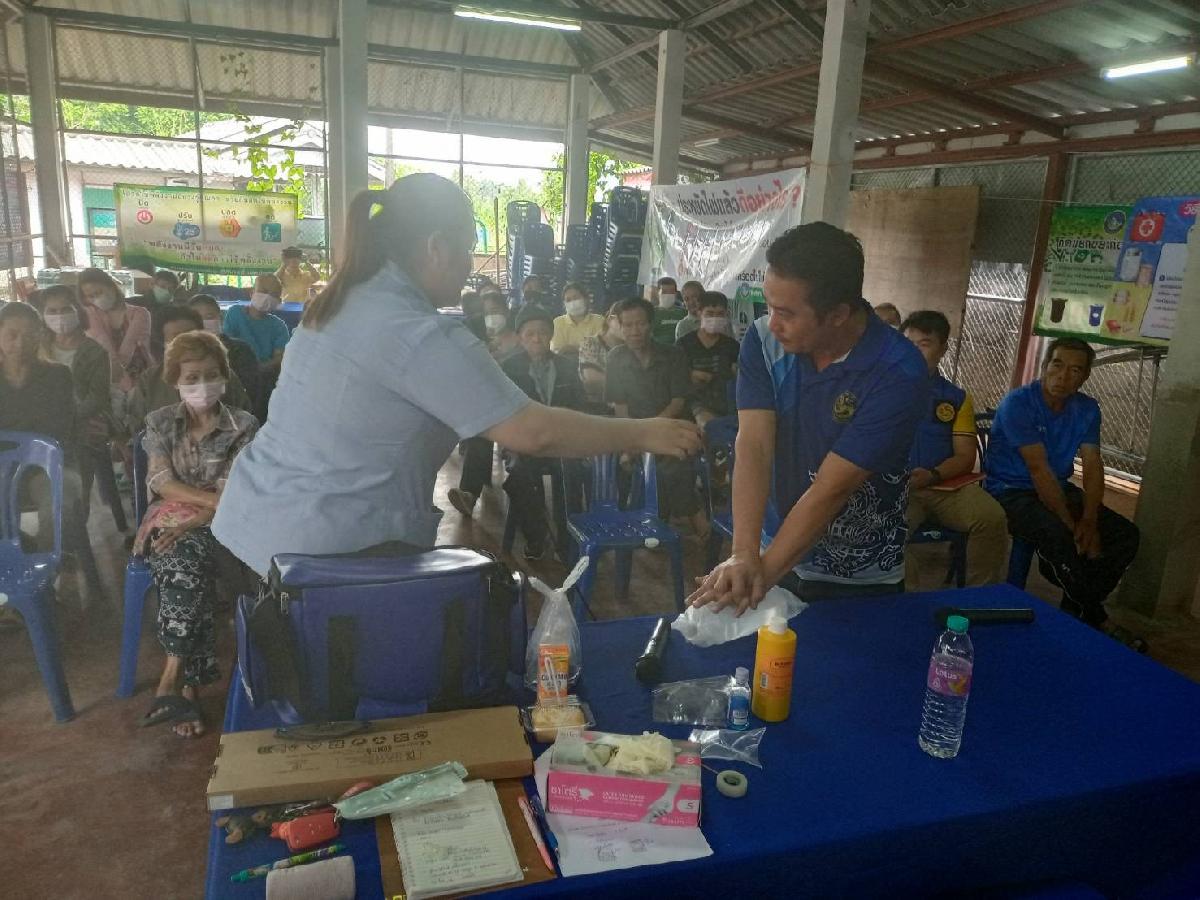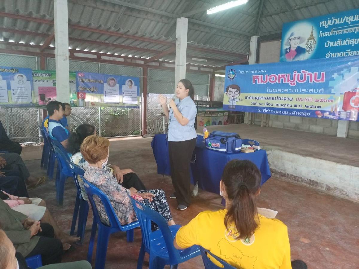 วันที่ 31 กรกฎาคม 2567 เวลา 08.30 น. ณ ที่ทำการชุมชนสันติสุข เทศบาลตำบลแม่ขะจานได้จัดโครงการอบรมหมอหมู่บ้านในพระราชประสงค์ ประจำปี 2567 โดยมี นางสาวภัทรียา นภาลัย นักวิชาการสาธารณสุข โรงพยาบาลส่งเสริมสุขภาพตำบลบ้านทุ่งม่าน เป็นวิทยากรการบรรยายให้ความรู้เกี่ยวกับการปฐมพยาบาลเบื้องต้น หลักการปฐมพยาบาลเบื้องต้น การช่วยฟื้นคืนชีพเบื้องต้นสำหรับประชาชน การปฐมพยาบาลบาดแผล/การห้ามเลือด การปฐมพยาบาลผู้ป่วยไฟไหม้/น้ำร้อนลวก การบาดเจ็บของกล้ามเนื้อและกระดูก และการเกิดภาวะช็อก ให้แก่ผู้เข้าร่วมอบรม