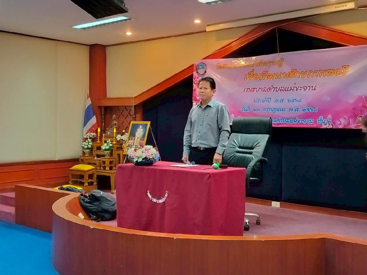 วันที่ 23 กรกฎาคม 2568 งานพัฒนาชุมชนสำนักปลัด เทศบาลตำบลแม่ขะจาน ได้จัดโครงการอบรมให้ความรู้ เพื่อพัฒนาศักยภาพสตรี ประจำปีงบประมาณ พ.ศ.2568 โดยมีนายอภิชัย แน่นอุดร ตำแหน่ง หัวหน้าสำนักปลัดเทศบาล เป็นผู้กล่าวเปิดรายงาน และมีนายเทียนชัย จันทร์เครือ นายกเทศมนตรีตำบลแม่ขะจาน เป็นประธานเปิดโครงการฯ