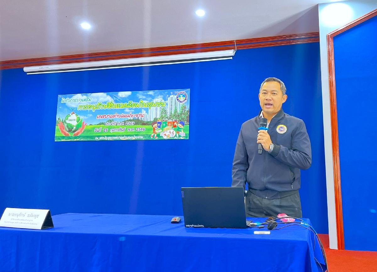 วันที่ 26 กุมภาพันธ์ 2569 เทศบาลตำบลแม่ขะจาน กองสาธารณสุขและสิ่งแวดล้อม ได้ดำเนินการจัด "โครงการส่งเสริมการอนุรักษ์สิ่งแวดล้อมในชุมชน ประจำปี พ.ศ. 2569" โดยมีนายเทียนชัย จันทร์เครือ นายกเทศมนตรีตำบลแม่ขะจาน เป็นประธานในพิธีเปิด และได้รับเกียรติจาก นายอนุรักษ์ ชลัมพุช นักวิชาการสิ่งแวดล้อมชำนาญการ กองสาธารณสุข องค์การบริหารส่วนจังหวัดเชียงราย มาเป็นวิทยากรให้ความรู้แก่ผู้เข้าร่วมโครงการในครั้งนี้